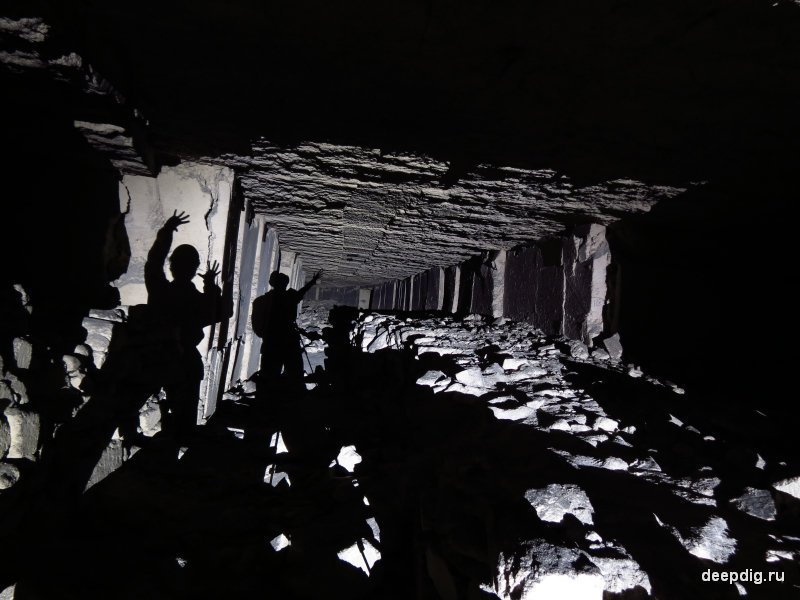 Оторвавшись от увлекательного созерцания чудо-подпорки, мы приняли решение переместиться в более безопасные (хотя бы с виду) штреки. Причём, незамедлительно. |