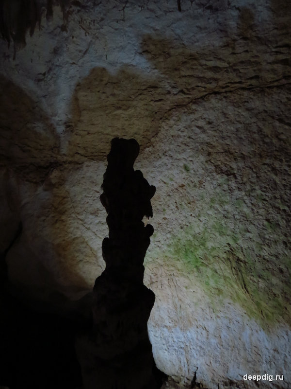 А длина оборудованных экскурсионных трасс составляет целых 1500 м. (Правда, в этом году экскурсионный маршрут на нижний ярус оказался закрыт). На фото - спуск в Обвальный зал. |