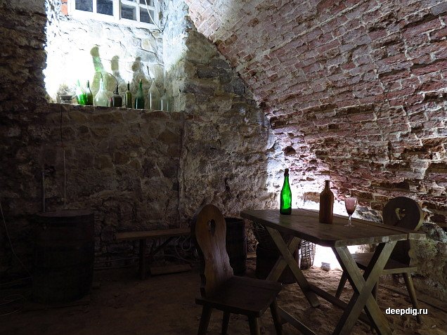 Подвал, тот самый, который мы посещали 10 лет назад, сейчас был оборудован в качестве экспозиции времён викингов. В древних нишах, служивших когда-то гернгутерам стенными шкафами, расположились шлемы, щиты и прочие предметы соответствующей тематики. Иван Иванович рассказал, что когда-то Дом незамужних сестёр и Дом холостых братьев были двумя отдельными зданиями (что, кстати, вполне логично). Позднее их соединили центральной кирпичной вставкой. Сотрудники музея предполагают, что подвалы двух домов могли быть связаны между собой. А там – кто знает…