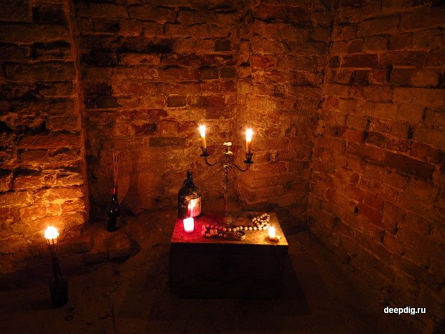 Из Дома аптекаря, уже с Иваном Ивановичем, группа переместилась в подвал Дома председателей общины. Когда-то это был Дом пастора. Есть версия, что в общине немцев-гернгутеров дом пастора был соединён подземными ходами с подвалами домов всех жителей общины, чтобы священник мог в любое время контролировать жизнь своей паствы. Честно говоря, нам эта теория показалась довольно сомнительной. Ведь соединить все дома подземными переходами – дело очень затратное и трудоёмкое, а жители общины, сколь бы набожными они не были, вряд ли страстно желали, чтобы за их личной жизнью постоянно кто-то наблюдал. В советское время подвал Дома пастора был отремонтирован. В нём располагались различные партийные учреждения, в том числе штаб ЧК. Подвал очень крупный. В стенах мы обнаружили несколько отверстий, через которые просматриваются параллельные проходы. На вопрос: что за этими отверстиями, конкретного ответа получить не удалось. Когда мы заканчивали осмотр, Иван Иванович сказал, что этот подвал – единственный, в котором он чувствует себя не комфортно, особенно, когда находится там один. Возможно, всё дело в призраках расстрелянных здесь людей…