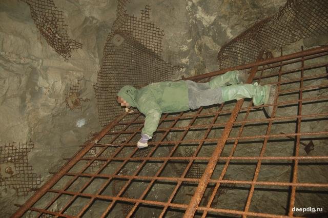 рельсов, гнилая сетка – рабица, который был укреплён потолок. Отовсюду торчали