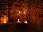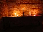В 4 подвал Гостевого дома Беккера (XVIII в.) мы спустились уже всей огромной толпой. Здесь явно проводились какие-то оккультные мероприятия, так как в первом зале на столах были расставлены канделябры и свечи, а также в левом дальнем углу красовалась какая-то фигура в белом балахоне (хорошо, что хотя бы без косы). Во втором зале нам рассказали несколько традиционных сарептских легенд: о бедной дочери Крауствурста и механическом рыцаре, о призраке владельца гончарного завода Ниденталя, о таинственном ограблении библиотеки в доме Лангерфельда.