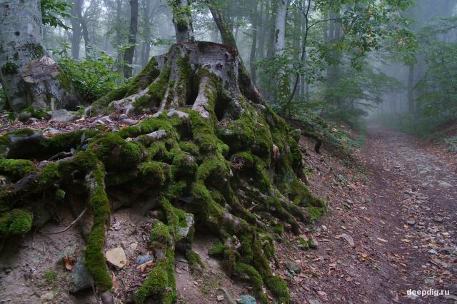 Измотанные, мы проспали до 9-ти. Неспешно поели, начали было собираться внутрь, чтобы исследовать левую сторону штольни, как вдруг услышали гул двигателя около входа. Мы стали лагерем немного ниже, и нас не было видно. Глаз пошёл на разведку и вернулся с плохими новостями – у входа стоял всё тот же белый Уазик. Судя по всему, приехали «закрыватели». Погрустив, мы снялись с места, и начали обходить гору Бык с другой стороны, лениво поискивая ещё один вход в штольни, о котором мы знали только понаслышке. У меня к тому же разболелась подвёрнутая накануне нога, так что поиски вскоре превратились в кампанию по как можно более скорому приходу в село Быкогорку, откуда мы начали свой долгий путь в наш временный дом.