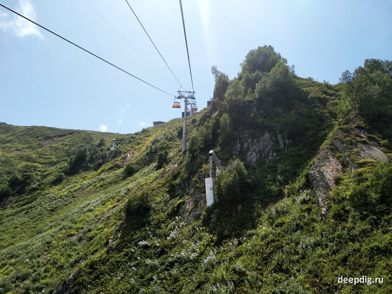 За Третьим Цирком нас ждал подъем к пику Чёрная Пирамида (2375 метров). Там погода ухудшилась, сгустился туман, стало холодно. Но от Чёрной Пирамиды уже начиналась действующая ветка канатной дороги. Мы решили прокатится на ней вниз до следующего цирка. |