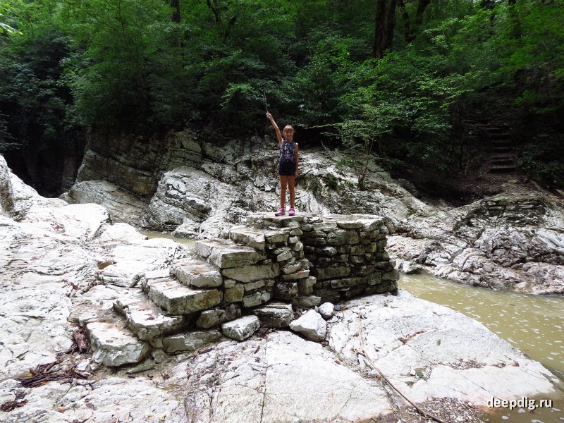 Совсем недалеко от 2-го Цирка, куда мы спустились на канатке, есть красивый водопад, который, кажется, называется Медвежий. Туда ведёт тропа, но нами в этот день было уже пройдено достаточно километров. Поэтому мы начали свой неспешный финальный подъём к узловой станции Горной карусели.